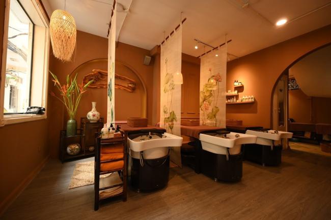 - Gội đầu dưỡng sinh:là chăm sóc tóc và da đầu một cách đặc biệt, kết hợp với việc massage vùng đầu, vai gáy, cổ, lưng,…làm sạch da đầu và tóc với các dầu gội thảo dược từ thiên nhiên như sả, bồ kết, vỏ bưởi, quế,…